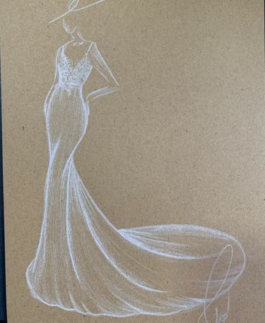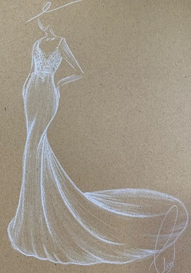 Você também pode aprovar o croqui (desenho) do vestido antes de iniciar a produção, para garantir que ele fique do jeito que você imaginou.