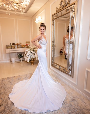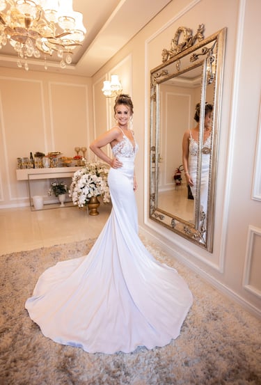 Agendamento de horário: você pode agendar um horário, pelo telefone, pelo WhatsApp ou pelo site, para ser atendida com exclusividade e tranquilidade. Você também pode levar uma acompanhante para te ajudar na escolha do vestido.